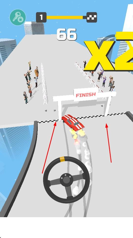驾驶赛车冲向终点FINISH,抵达终点即可完成关卡并获取相应奖励。