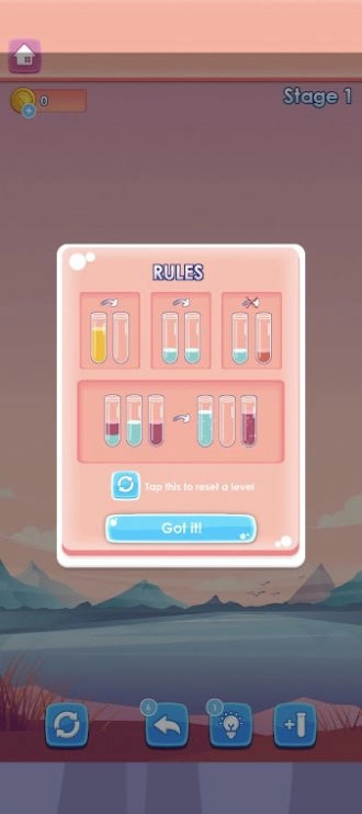 只需点击试管就能把液体倒进另一支试管,操作简便易懂,只要持续转移让相同颜色的液体汇集到一块儿就算通关。