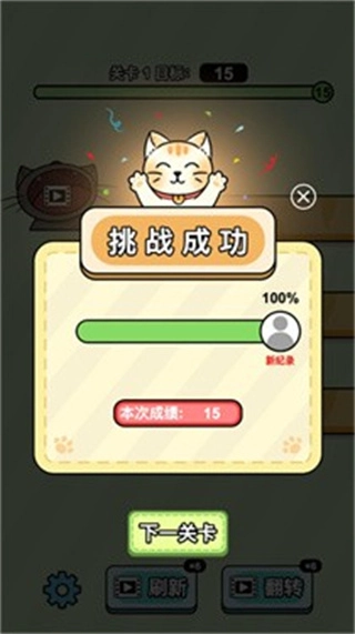 持续给猫咪喂食,让上方的进度条不断推进,直到完成该轮次的目标,从而通过关卡挑战。