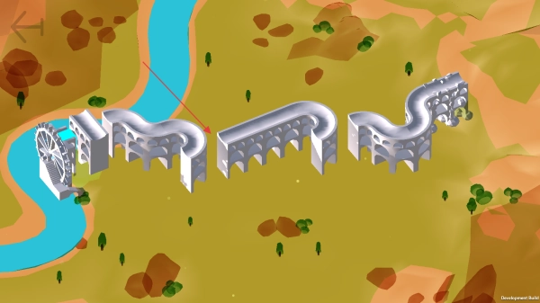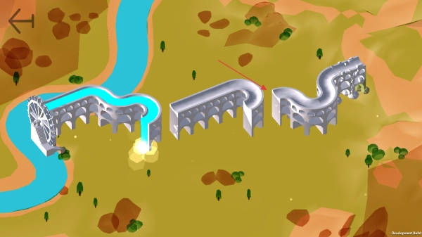 观察水源和各段水道之间的位置关系,点击最左侧与水车相连的水道部件,调整它的走向,让水流可以顺利流入下一段水道,保证初始水道和水源衔接自然,为后续通水奠定基础。