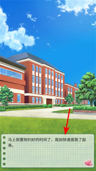 游戏过程中需要阅读剧情文本,比如“马上就要到约好的时间了,我加快速度跑了起来”这类内容,阅读时要留意剧情里的细节,这些细节能为之后的选项选择和剧情推进埋下伏笔。