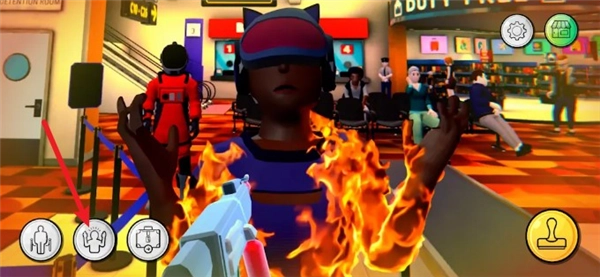 当遇到危险人物时,可持武器要求对方举手投降,在确认安全无误后,点击右下角的盖章按钮予以放行。