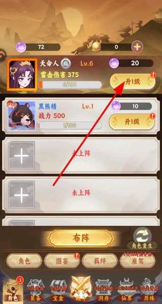 为天命人等角色提升等级,强化攻击等各项属性,增强整体战力,以此保障在西游冒险中的战斗能力。