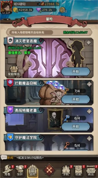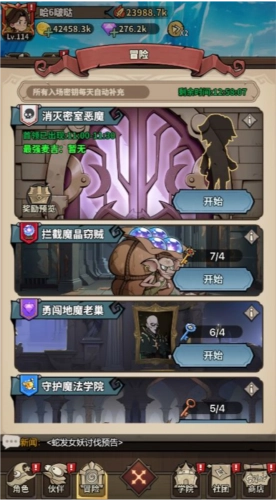 冒险玩法里设有5个核心副本,它们是游戏内资源道具的重要获取渠道之一。