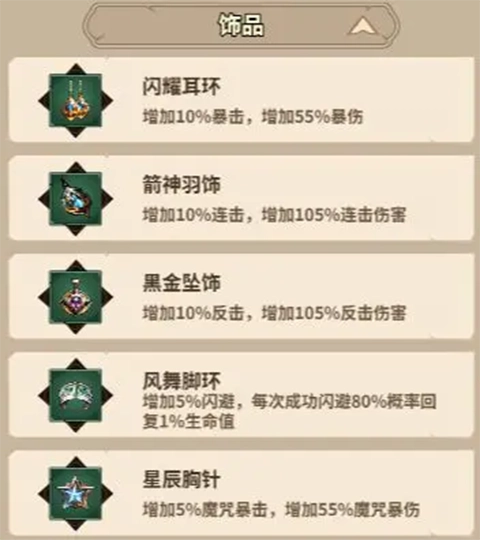 魔法师的饰品搭配同样需要结合前后期阶段来考量:前期建议佩戴闪耀耳环,借助其提供的暴击属性加成,能有效提高魔法师推进关卡的效率;到了后期,随着各项属性的逐步强化,则更推荐选择风舞脚环,通过增加闪避属性,帮助魔法师更好地规避敌方攻击,从而获得更多输出空间。