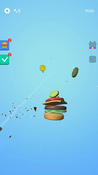 切开的过程非常解压,有着食物碎片飞溅的效果。