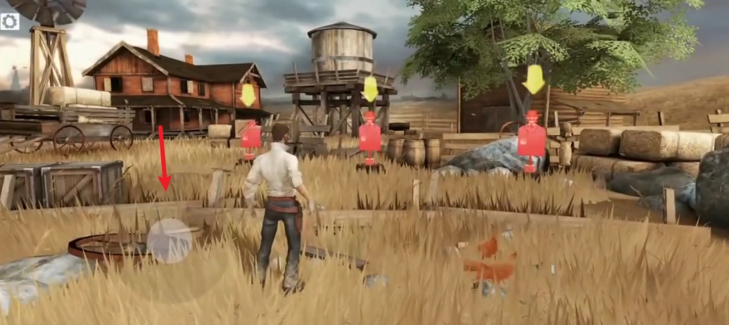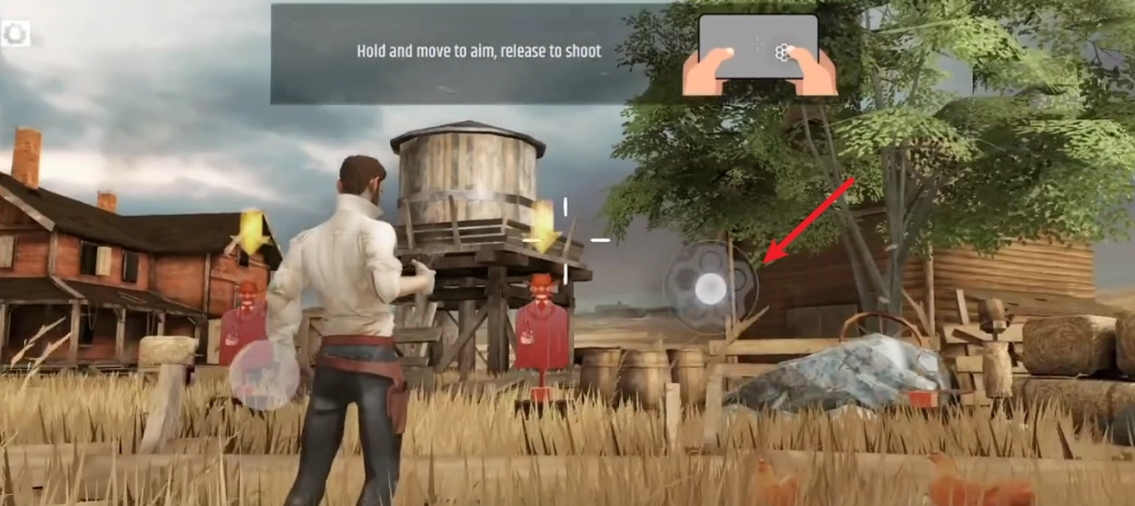接下来,拖动屏幕右侧区域就能调出左轮弹匣的瞄准按钮,点击屏幕就能完成射击。