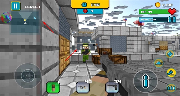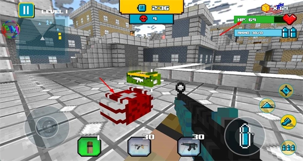 在不同场景中探索以获取武器箱,通过更换更强大的武器来增强自身的攻击能力,从而更好地应对各种各样的敌人。