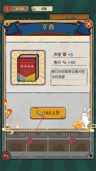 查看货物可为杂货铺带来的声望指数,若达到要求,点击下方的上货按钮完成购入。