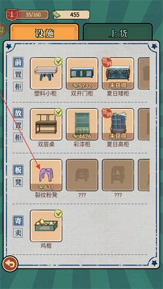 在设施列表里,还能购置杂货铺日常所需的设备设施类物品,也可以开启寄卖服务。