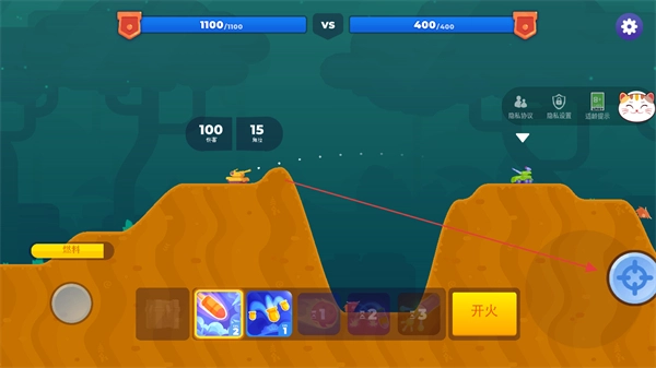 点击开火按钮发射炮弹,攻击敌方坦克,逐步消耗其血量。
