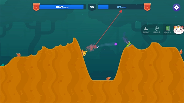 射击严格遵循物理抛物线原理,需结合距离、风速、地形高度差精准调整力度与角度,每一次射击都充满策略性与挑战性,告别单一化的无脑攻击模式。