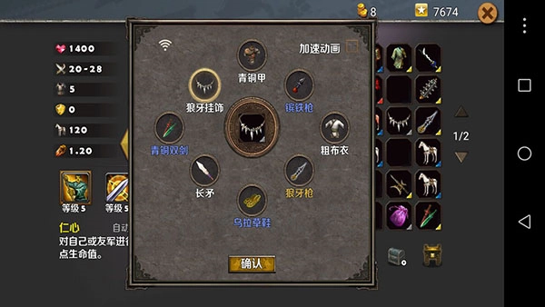 游戏商城界面下方有个青铜宝箱的选项,过关会给不少战功,根本不用存着,留一点点用来升级就够了。买完宝箱后该去哪里开启呢?不清楚的话可以看图三,装备仓库下面那一排有个宝箱图标,点击它之后转盘就会开始转动。我运气一般,只抽到了白色品质的物品,要是运气好的话,是能开出黄色装备的。