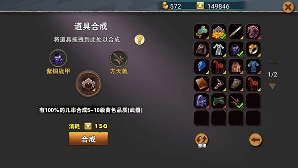 5级毒塔堪称最强防御塔,具备减速、减防与持续伤害效果,是通关地图和挑战军团副本时必不可少的关键配置。大家只需在第一张地图的第三挑战难度下反复刷关即可:开局把所有初始资金都用来建造一座毒塔,之后静静等待关卡结束就行。通关过程中会获得大量1级黄色剑,这些道具也能用来洗练其他黄色装备——就像图中展示的那样,合成时中间位置的装备种类会决定最终合成装备的类型,而合成后装备的等级则会在提示的等级范围内随机生成。