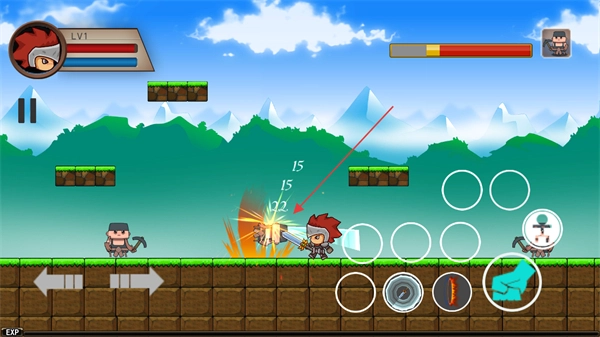 当遭遇持弩小兵这类敌人时,点击攻击按钮即可发动攻击,将敌人击败后能获得经验与金币。