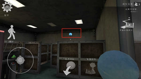 第7步:前往屏幕所在位置并蹲伏通过 朝着显示红色方块的屏幕方向移动,行进途中会遇到一处狭窄的入口,需要通过“蹲下”操作才能顺利穿过。
