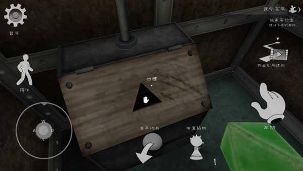 第9步:拾取绿色三角体并定位目标 回到箱子旁取绿色三角体,抬头查看周围,寻找墙上或屏幕上对应的绿色三角标识。