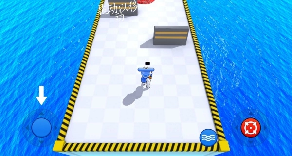 在不同平台之间移动时,用左边的虚拟摇杆来操控角色的走向,当靠近敌人的时候,点击右边红色的攻击按键就能喷射颜料。与此同时,要留意平台的边缘,防止掉进水里。另外,要优先把平台上的敌人清除掉,这样才能占据这片区域。