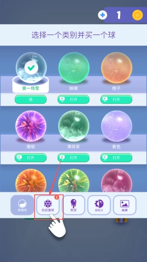 自选类别:进入选球界面后,挑选心仪的类别,点击打开即可获取抗应激球。
