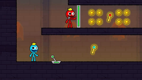 基础玩法:操控红蓝两个小人开展各类任务,涵盖跳跃、躲避、推动机关等动作。