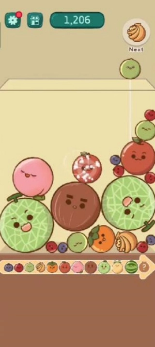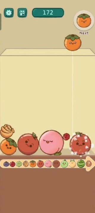 玩家得持续把水果投进场地里,让相同的水果相互碰撞,从而合成更大的果实。