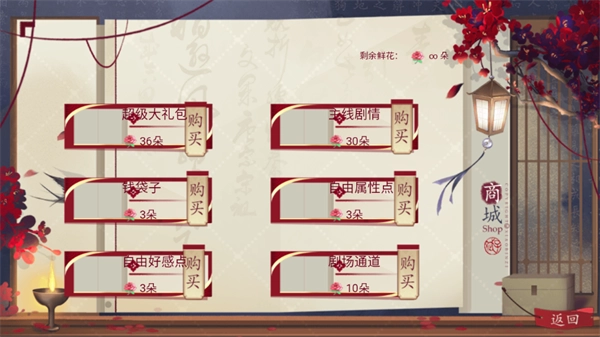 我们可以看到右上角有无限鲜花的设定,这样就能把想要的道具都轻松获取到手了。