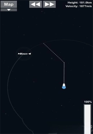 打开地图,查看火箭的飞行轨迹是否靠近月球轨道,利用剩余的氮气桶来完成轨道的调整操作。