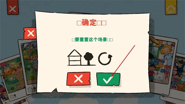 当弹出“确定要重置这个场景吗?”的提示框时,点击绿色的对勾按钮,即可完成场景重置操作。