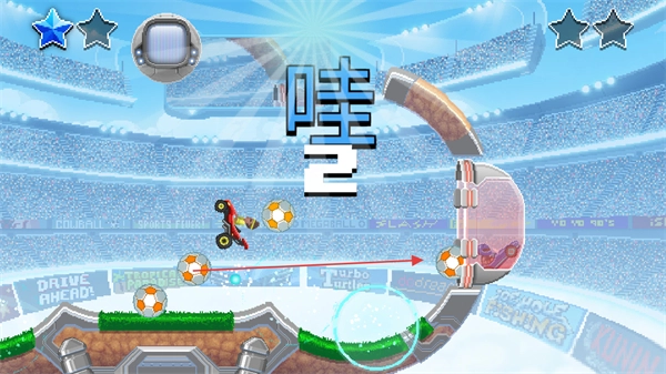 借助赛道的弧形轨道与各类道具,灵活调整赛车所处方位,精准地撞击足球,以此提升射门的成功率。