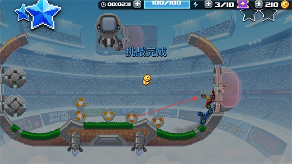 把足球顺利踢进球门,完成射门任务,就能得到金币和星级评定。