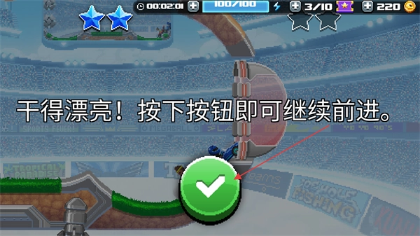 挑战结束后,点击绿色确认按钮,就能接着开启下一关的足球运动挑战啦。