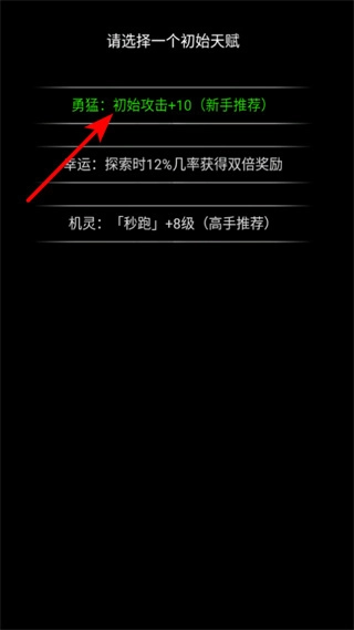 进入游戏后,建议选择“勇猛”天赋,它能让初始攻击提升10点,这是增强开局战力的重要选择,新手选它能更轻松地开启冒险之旅。