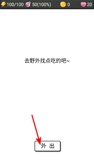 点击外出按钮前往野外觅食,这是获取生存资源的基础操作,能以此开启野外探索进程。
