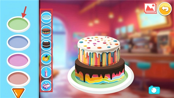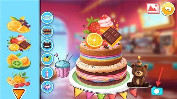 在蛋糕制作界面,点击右下角的相机图标,就能给制作完成的蛋糕拍照。