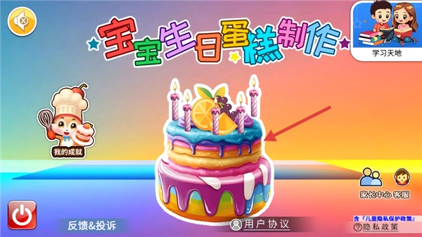 在【宝宝生日蛋糕制作】的主界面中,点击蛋糕即可开启蛋糕的制作流程。
