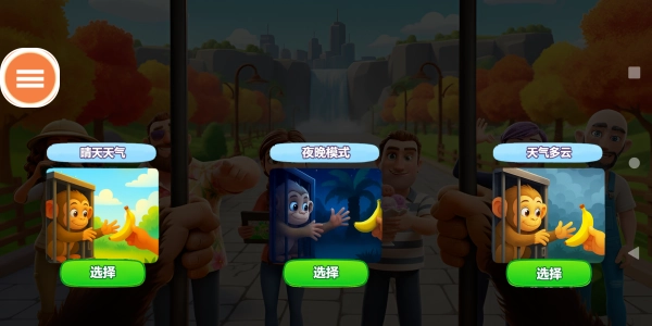 接下来玩家需要挑选天气,可选择的天气有晴天、夜晚和多云三种,不同天气对应的挑战难度存在差异。