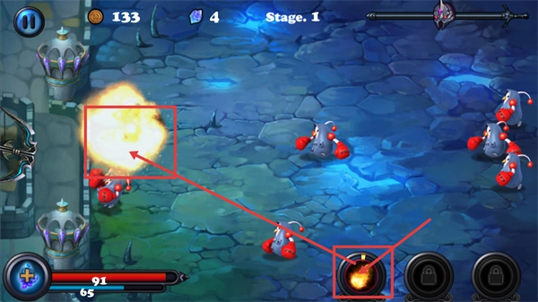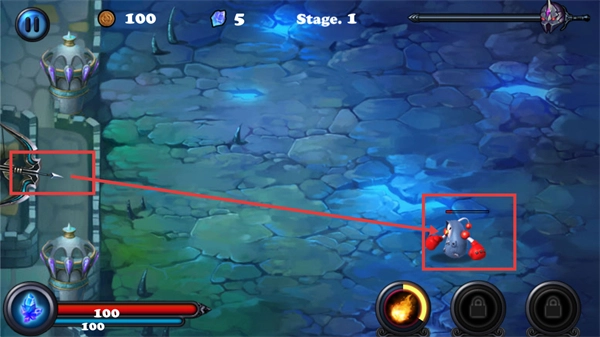 在【Stage.1】的战斗环节里,你需要操控弓箭对准怪物,借助基础攻击来着手抵御敌人,以此积累战斗经验。