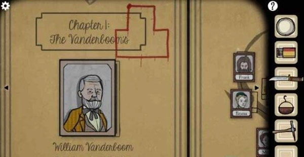 翻开书,放入一张Vanderboom家族的照片(可依据之前的作品或照片背后的阴影来确定),再将威廉的照片放置在书的左侧。