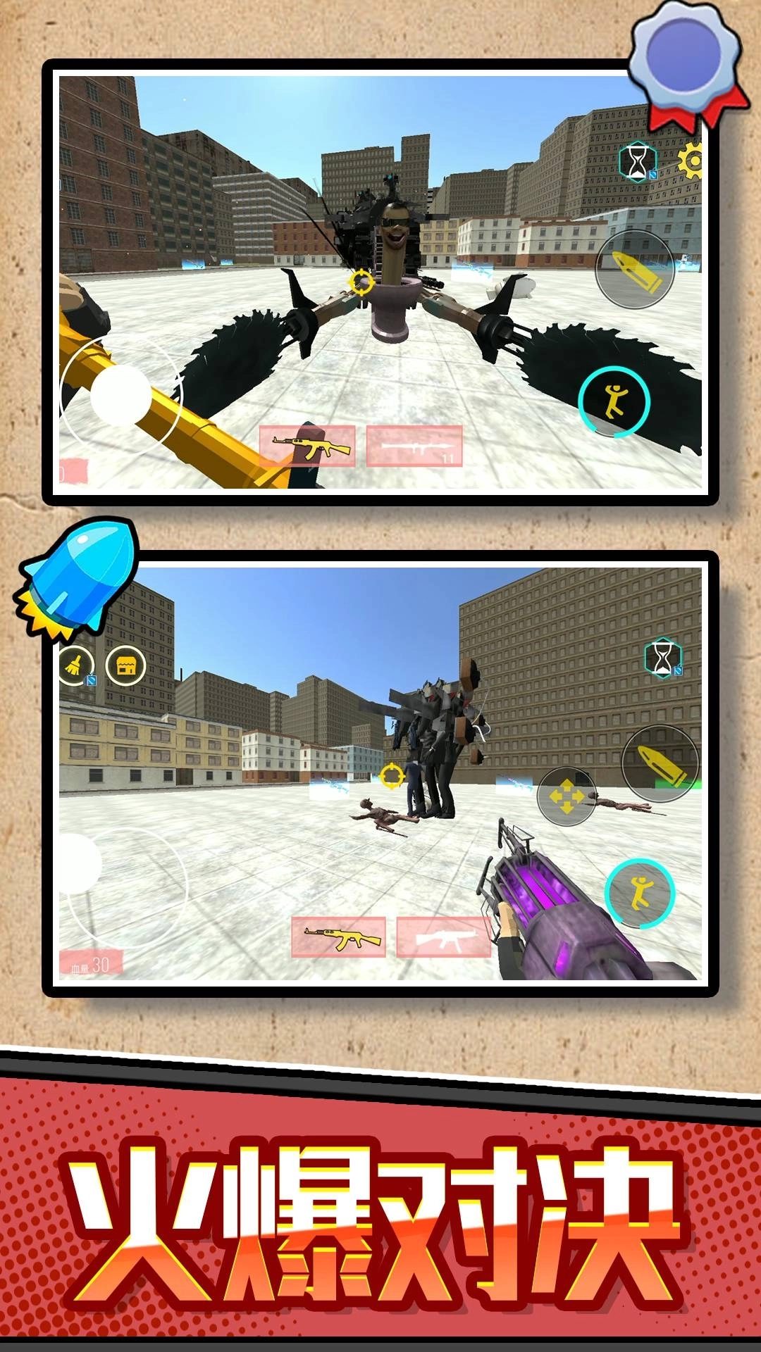 1、感受在荒诞场景里和马桶怪物激烈对战的刺激与乐趣,化身异世界马桶大战中的传奇英雄。