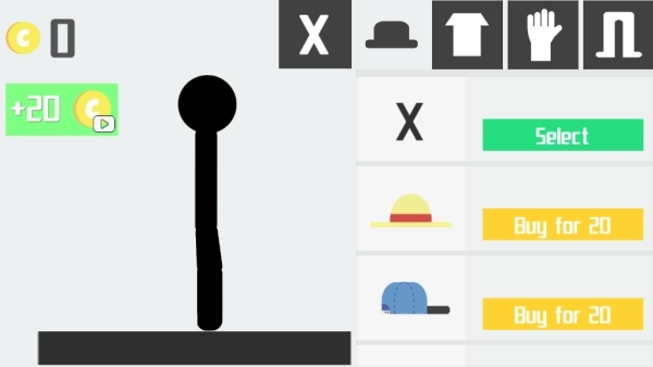 2.玩家可在主界面的商城里选购各类服饰,为自己的火柴人更换不同造型后再去闯关。