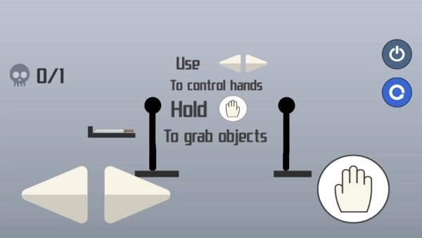 3.如下图所示,玩家可借助左侧按钮操控角色手臂的运动轨迹。当手臂触碰到武器时,点击右侧按钮即可让角色握住武器。