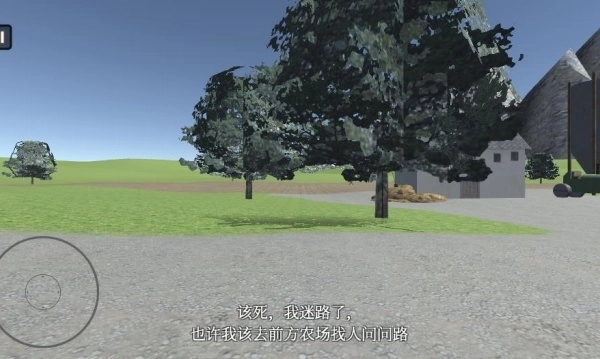 3.借助虚拟摇杆在农场里自由探索,朝着农场的方向前进。