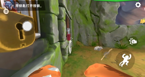 4、借助虚拟摇杆精准操控猴子移动至笼门位置,待钥匙图标亮起时点击使用,就能顺利打开笼锁,让猴子重获自由。