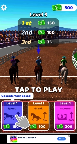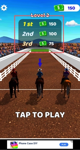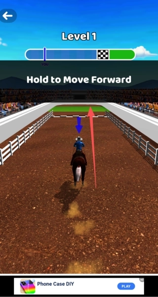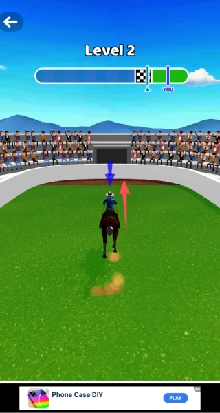 1、连续点击屏幕可操控您的赛马加速,让它朝着终点方向不断奔跑。