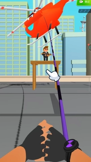 1、拖动屏幕来操控绳索摆动,点击屏幕可固定锚点,松开手指就能释放绳索攻击敌人,只要精准命中就能快速获胜。
