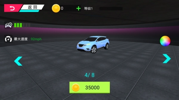 2、进入虚拟车库查看车型库,了解不同车辆的性能参数与价格体系,通过完成任务积累金币解锁目标车型。