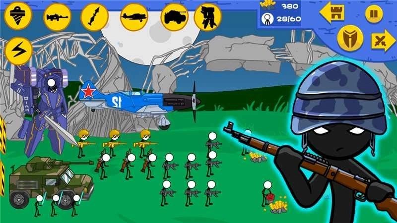 火柴人现代全面战争是一款火柴人题材的射击战斗游戏,游戏内包含超多可解锁的火柴人兵种,这些兵种能在不同关卡中派上用场,而你需要面对的敌人种类也各不相同。你要做的就是挑选合适的兵种进行派遣,进而消灭所有敌方部队。征服世界便是你的最终目标。