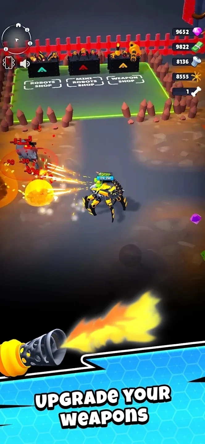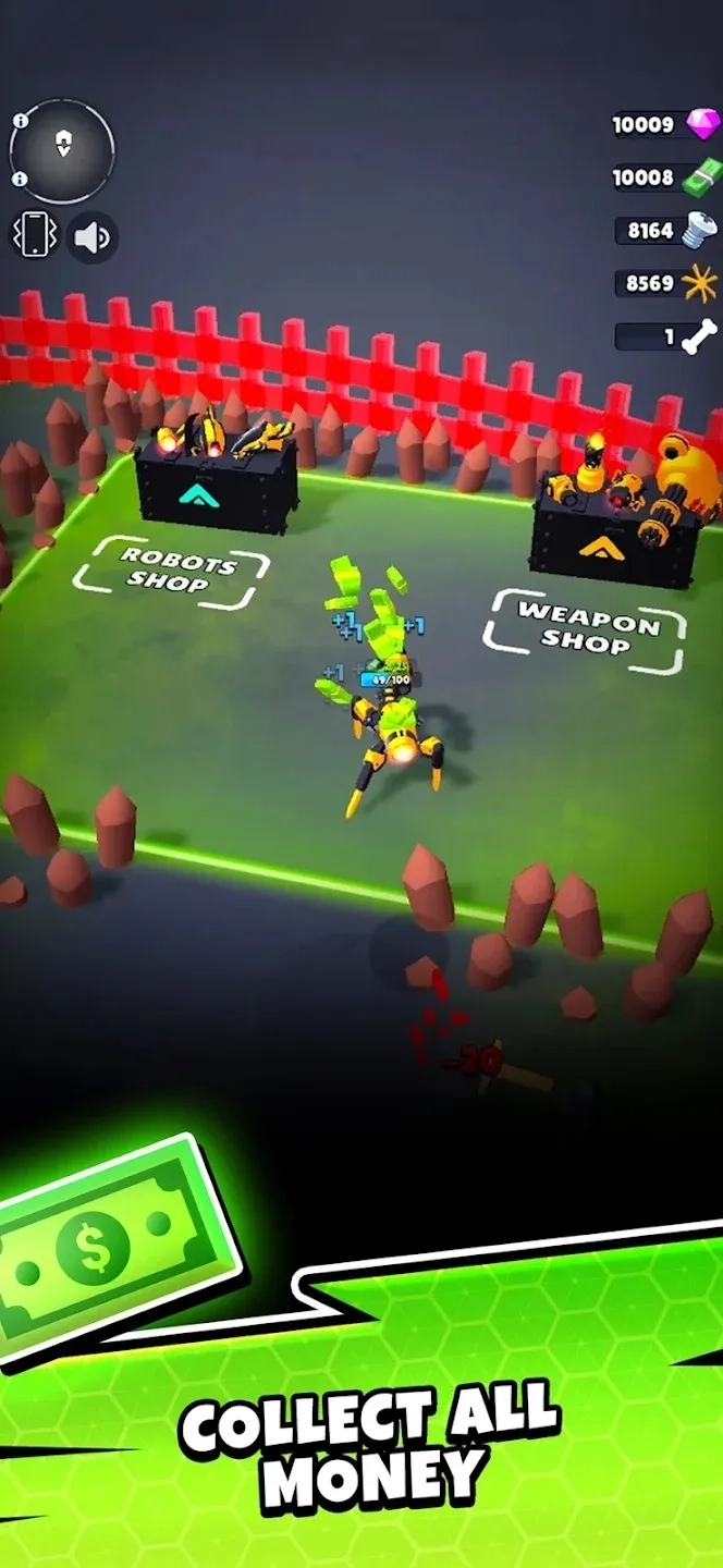 2.收集与升级:在你的灭鼠冒险之旅中,收集珍贵的金币和璀璨的宝石。利用它们解锁全新区域,购置未来武器,还能升级你可靠的机器人伙伴。你可以用酷炫吸睛的设计来定制专属机器人。