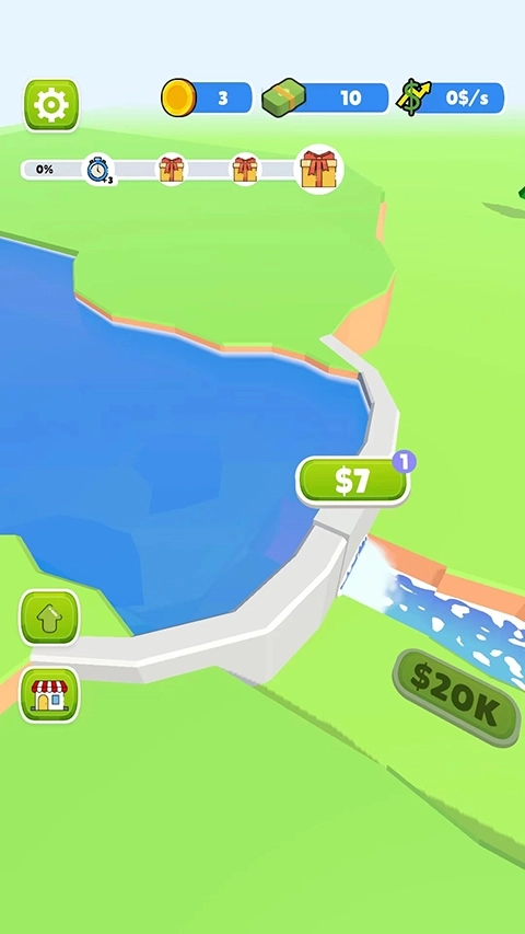 3、点击河堤上的金币可以加快水流速度,