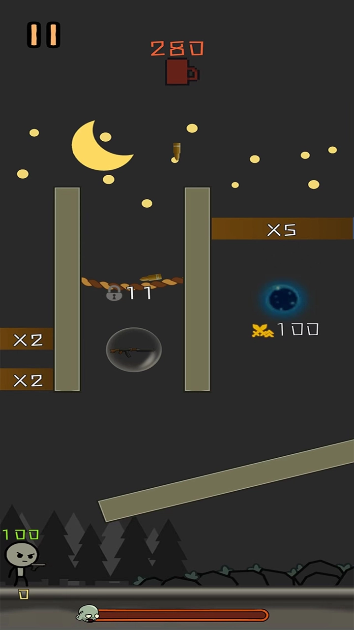 这是一款结合休闲与益智元素的单机游戏,将数学逻辑与创意解谜精妙地融合在一起。游戏里,玩家要灵活操控子弹下落,突破重重障碍,抵御汹涌袭来的尸潮。这不仅是一场充满趣味的挑战,更是对智力的检验,玩家需要精心规划策略,攻克关卡。游戏采用简洁的卡通画风和清新的色彩设计,背景音乐与音效的紧张节奏,为解谜过程增添了几分刺激感。